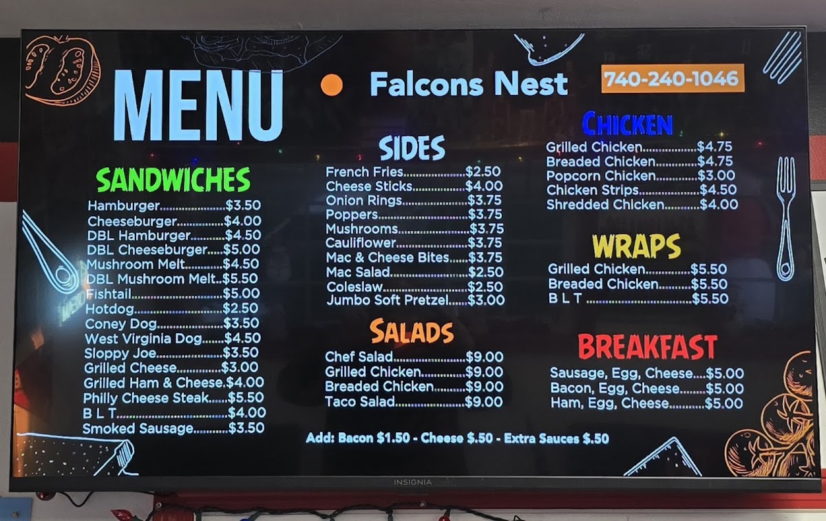 Falcon's Nest Menu